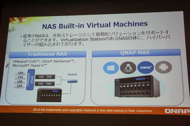NAS内部にバーチャルマシンを内蔵し、複数のOSを同一のNASで切り替えて使用できる