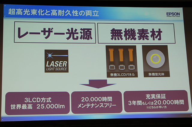 エプソン、“世界最高の明るさ”を実現した業務用レーザー光源プロジェクター