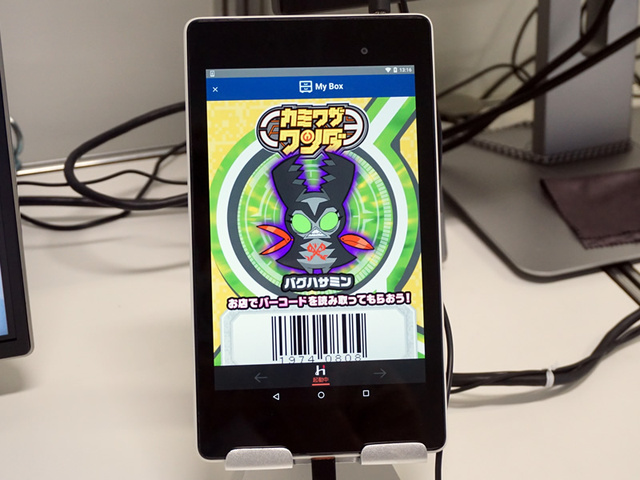 配信されたバーコードを店舗レジでスキャンしてもらうとモンスターのデータを獲得。獲得したキャラはハイブリッドキャストの画面上にコレクションされる