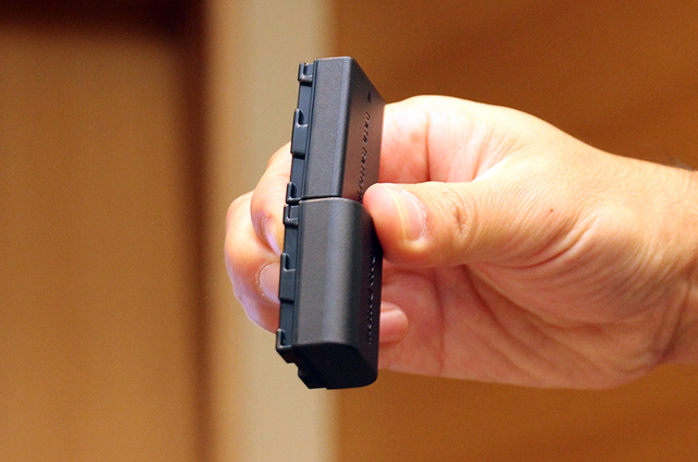 本機に搭載された小型・大容量の新バッテリー(写真上)
