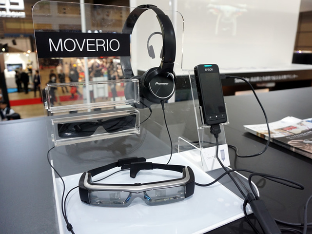 “MOVERIO”「BT-200」。MWCで海外発表された第3世代機は「まだ我々も実物を見ていない」(ブースの同社スタッフ)とのことで展示されていなかった