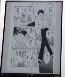 コミックの表示にあたっては、16階調のモノクロ電子ペーパーでコンテンツを美しく表示するため、ビューワーを出版社とともにチューニング。様々なアルゴリズムを調整することで、描線のガタつきを無くした滑らかな表示、スクリーントーンの最適な表示などを実現した。実際にチューニング前と後の画像を見比べると、描線の滑らかさが異なっていることが一目でわかる。なお、ページの拡大表示を行うことは可能だが、見開き表示は行えない。