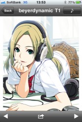ヘッドホン娘のイラストはiPhoneの壁紙にも使用可能。またヘッドホン診断機能も設け、いくつかの項目から好みのものを選択すると、おすすめのヘッドホンを紹介してくれる。さらにワード検索機能も装備し、ヘッドホン関連の専門用語もアプリ内で紹介する。