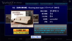 Yahoo!オークションの出品商品から、検索やお薦めの結果がリモコン操作を行わない状態でも次々に画面に現れる構成となっている。テレビ上だけで商品閲覧から入札まで行える。