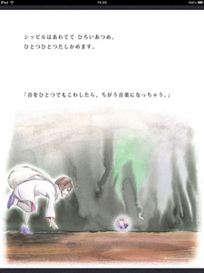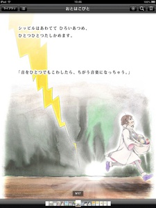 この「おとはこびと」は最新の電子書籍フォーマットで作られており、ページをめくると画がアニメーションとして動き出す。そして、音楽が流れる。ただ読むだけではなく、物語を体感できる絵本となっている。