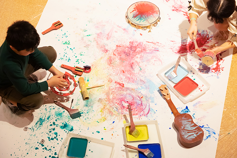 さらに2月22日(土)には、楽器にインクや絵の具で色をつけて、目に見える “音のカタチ” として描く特別イベント「音筆」を実施する。楽器の形状や実際の音で模様を描き、大きな絵を完成させるというあそびで、楽器は一般募集した使わなくなったものを使用。家で眠っていた楽器が、子どもたちのあそびとして新たに生まれ変わる施策となっている。対象年齢は3歳以上となっており、参加者には当日整理券が配布される。