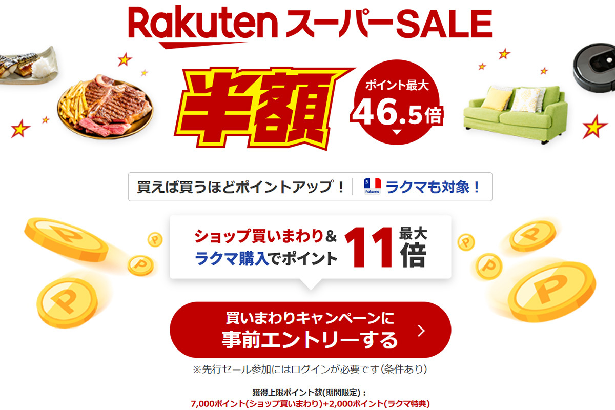 楽天スーパーSALEは3月11日1時59分(10日深夜25時59分)までの開催。明日以降の超目玉アイテム情報も事前公開されているほか、割引クーポンの配布なども行われている。詳細は公式ページで確認できる。