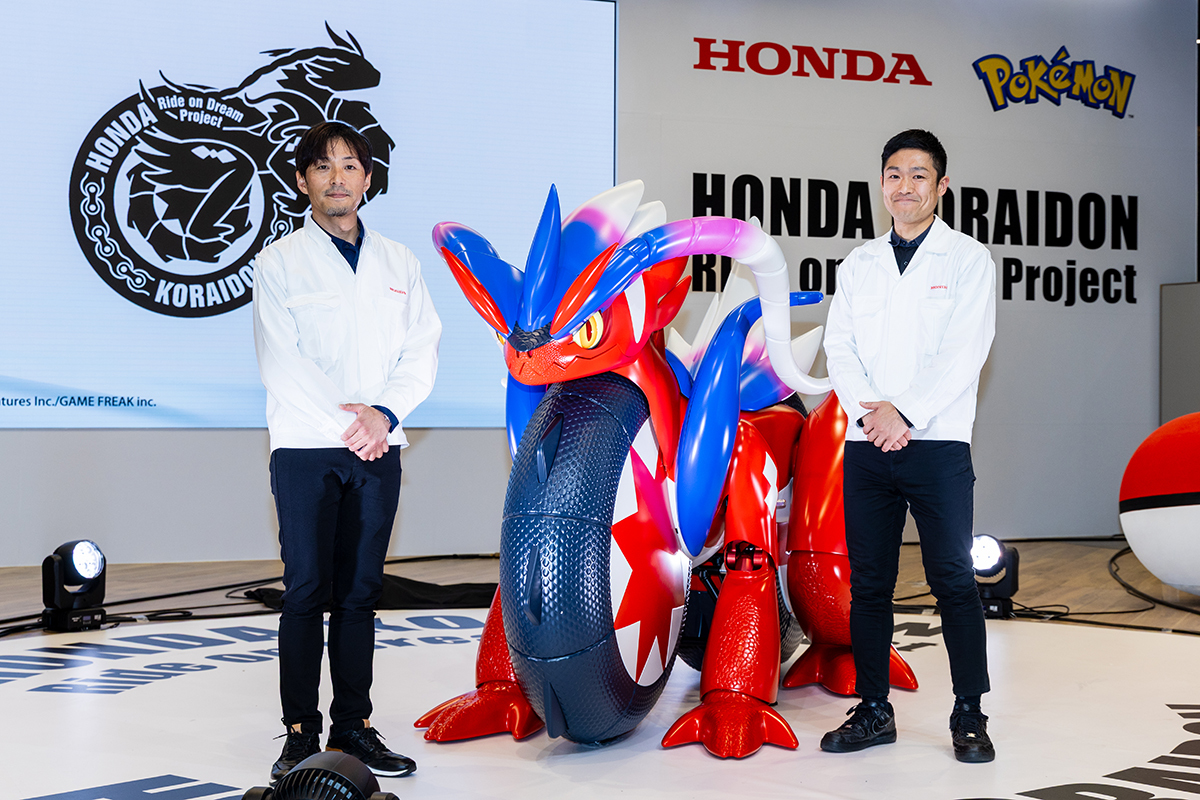 ホンダコライドンは、ゲーム「ポケットモンスタースカーレット」に登場する伝説のポケモンをもとに、実際に人が乗って動くミライモビリティという形で作成。