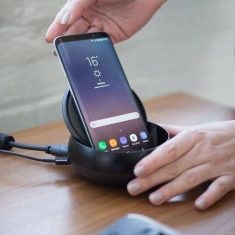 今春に海外で発売された、「Galaxy S8/S8+」をデスクトップPCのように利用可能にする「DeX Station」を体験できる。なお、DeX Stationの日本での発売は未定で、グローバル製品の展示となり。