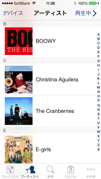 iTunesのライブラリのアーティスト一覧を表示したところ。デザインがシンプルになった