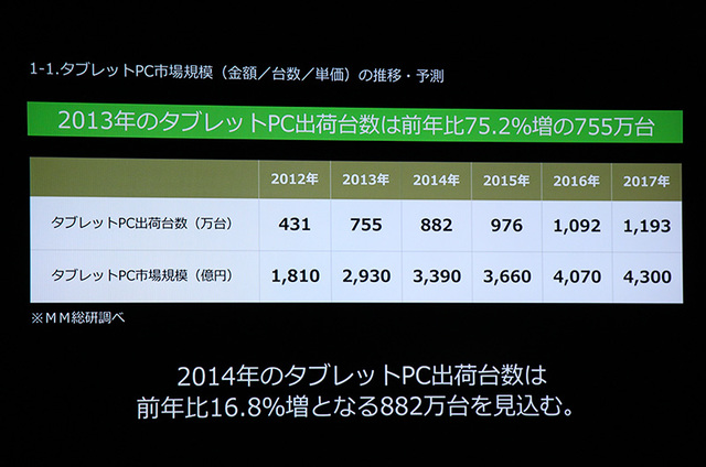 タブレットの出荷台数は順調に伸びているとのこと。またWi-Fiモデルの人気が高いという。