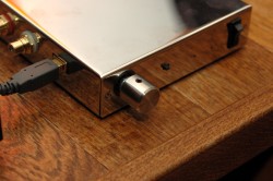 箱から製品を取り出してみると、まずアンプの小型さ、シンプルな意匠にあらためて驚かされる。印字類が一切無いミニマルなデザインで、ポリッシュ加工のレベルの高さは言うまでもない。iPodの鏡面仕上げと同様に指紋は付きやすいが、ポータブル機と違って頻繁に触るものではないので問題にはならないだろう。アンプの外観には非常に好感を持った。