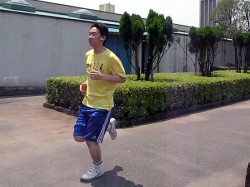 続いて試したのは、なわとび。連続的な上下動という振動への対応能力をチェックしてみた。