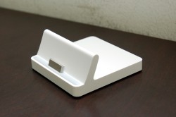 iPadには当然ながら、ドック端子が1箇所にしか搭載されていないので、固定しながら縦向きと横向きを自在に変更でき、なおかつチルトもできるようなドック付きスタンドがあると便利そうだ。だが、このようなスタンドでは、当然ながら広めの設置面積が必要となるだろうから、iPadの特長であるスリムさを活かせないことになってしまう。