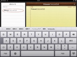 また入力した文字の入力候補は、iPadではキーボードの上方に現れるバーに、ある程度大きく表示されるので、指先で選択しやすい。iPhoneだと入力欄の上に小さな吹き出しのように表示されるため、押し間違ってイライラすることがままあるのだ。画面が大きいiPadならではの利点だと感じた。