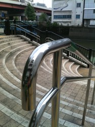実際に暗所(地下へ下りる階段)を撮影した写真を確認。すると目で見た印象よりも写真全体が明るく撮れる。この段階でまず好感触を得た。