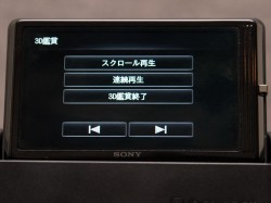 続いては「3Dスイングパノラマ」で撮影した画像の再生にトライ。TX9の場合はモニター右側に表示される3Dアイコンをタッチすればよい。3D BRAVIAの場合、カメラ側で3D再生を選べばテレビも連動して自動的に3Dへと変更される点も、細かいがユーザーフレンドリーで好感が持てる。