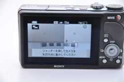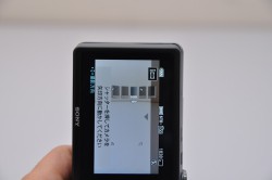 動画記録は新設の「PSモード」が、プログレッシブ方式による28Mbps・1080/60p動画を撮影できるモードだ。動画データは独自フォーマットにより記録されるため、BDレコーダーやディスクにファイルを移して動画ファイルとして再生することはできない。基本的には撮ったカメラをHDMIケーブルでテレビにつないで再生する楽しみ方になる。テレビでPSモードの動画を視聴してみたところ、大画面テレビで見応えのある高精細な映像の仕上がり具合が実感できた。なお動画撮影時には、同社のビデオカメラ“Handycam”シリーズに採用されている、上下左右2軸とジャイロセンサーによる回転軸方向のブレにも対応した3軸補正対応の手ブレ補正機能がはたらくので、コンパクトな筐体ながらブレを抑えた安定感の高い動画が撮影できる。さらに動画撮影中に静止画シャッターを切れば、3メガ(16対9)の静止画撮影が行える。動画撮影時の音声については、本体上部に大柄なステレオマイクが設けられ、記録品位の安定感が高まった。撮影時に誤って指がかからないよう、マイク位置のレイアウトにも気が配られている。ただ、本体のデザインをスマートにしつつ、3.0型の大型モニターを搭載したためか、背面のボタンはやや窮屈で操作しづらかった。特にMOVIEボタンは押し込み感が浅く、撮影を開始/終了の手応えがわかりにくいように思う。