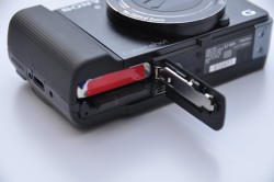 HX9Vにはあって、本機にはない機能の一つがUSB給電・充電機能。本機をテレビにつないで、撮影した動画をゆっくり鑑賞したいというニーズはあると思うし、ビジネス用途も考慮した場合はぜひ搭載して欲しかった機能だ。また、ハンドリングしていてレンズキャップの取り回しも気になった。キャップを付けているのを忘れて電源を投入してしまうと、起動時にズームレンズがせり出してきて、キャップがポンと飛び出してしまう。レンズ機構の故障を防ぐためには撮影前に必ずキャップを外すよう心がけるか、あるいは常時外しておくという手もあるが、レンズ保護のためにはお薦めできない。本機専用のレンズ保護フィルターを装着できるようにするなど一工夫あれば、より扱いやすいカメラになるのではと思う。