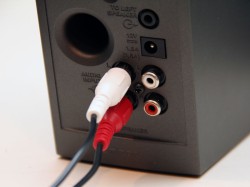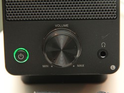 梱包内容は、AC電源、プラグ+、RCA→3.5mmケーブル。音声入力はRCA2系統を備えているので、PC以外の再生機器とも同時接続が可能だ。また、電源スイッチが音量ノブと同一になっており、スマートに操作できるのも、細かなことながら記者的にはポイントが高い。