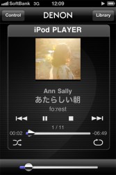 iPhoneやiPod touch、iPadにインストールしてデノンの対応機器が操作できるコントローラーアプリ。本体電源のON/OFF、入力ファンクションの切り替えやボリューム調整などの基本操作をはじめ、FM/AMラジオの選局、インターネットラジオ視聴やNAS/パソコン等の音楽ライブラリの再生といったネットワークオーディオ再生、メニュー操作が手元で行える。またiPod Player機能により、他のアプリへ切り替えずにiPhoneやiPod touch内の音楽ライブラリ再生も楽しめる。