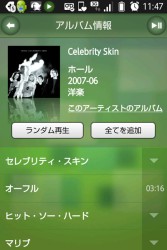 だから一番最初に音楽を聴き始めるときは、能動的に検索を行うか、先述のLISMO側が用意したプレイリストを取っかかりとして聴いていくかたちになる。なお、再生中に画面右上の「i」マークをタップするとアルバム情報が表示され、そこから同一アーティストの別のアルバム一覧を表示させることもできる。