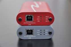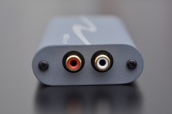 まず大きな特徴は、ペンケースほどのコンパクトさと、USB入力とアナログ出力のみを用意したというシンプルな仕様。必然的に電源はUSBバスパワーだ。PCからのノイズの影響は、独自回路で電源を再生成することで回避している。一方で、限られたスペースの中にサンプリング周波数を示すLEDを用意してあるのは嬉しい。ユーザーは一目でそれを確認できる。USB伝送はアシンクロナス(非同期)方式。PC側ではなく本機側のクロックを基準に伝送を制御し、音質を損なうジッターを抑制する。