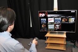また、“地上波放送のリアルタイム視聴促進”という狙いに基づき、通常のテレビ視聴とVODサービスをつなげている点が特徴のひとつ。たとえば放送番組の視聴中にリモコンの専用ボタンを押せば、その放送局のVODコンテンツを購入できる売り場画面に移動。VIERAの場合、地上波放送を子画面で見ながら、VODコンテンツを選んで購入することも可能だ。また、関連するシリーズ番組の放送時間なども表示される。ドラマなど見逃し番組を簡単に視聴できるようにすることで、次回からのリアルタイム視聴につなげる考えだという。