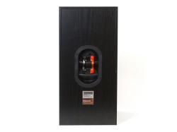 バスレフポートは前面に移され、シングルで横長のラウンド形状を採用している。また背面にはバイワイヤリング対応のスピーカーターミナルを確認することができた。ブックシェルフとはいえウーファーが20cmを超えるとその動きを支えるキャビネットも大型のものとなるので、必然的に存在感のある大きさとなっている。