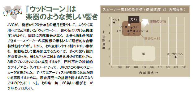 もうひとつのポイントはリラックスできるサウンド。それを生み出すのは、JVC独創の「ウッドコーンスピーカー」だ。木製の振動板だからこその自然で豊かな音がくつろぎを深めてくれる。そのチューニングは前モデルのEX-S1からもさらに進化。ドライバーユニット背面にウッドブロックを設置して振動を抑えることで、よりクリアな響きと低音を実現している。