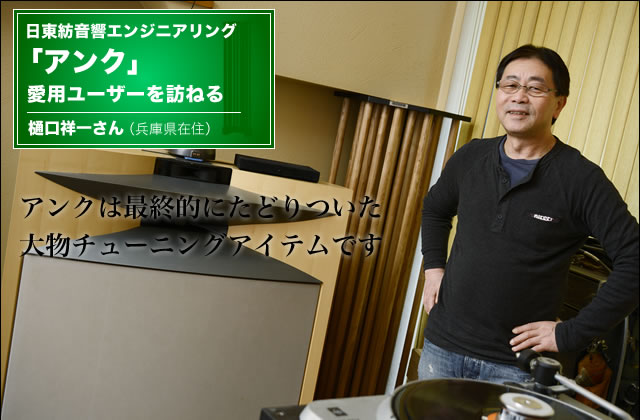 「オーディオルームにある機器はすべてが電気でつながっています。ですからカートリッジのリード線1本かえただけでも、全ての音質に影響を及ぼすのです。そんな中で、自分にとって特に恐ろしかったのが低域です。低域の定在波が持っているマスキング効果は音質の全てに影響を及ぼしてしまうのです。そういった意味でアンクは最終的にたどりついた大物チューニングアイテムです」と語る樋口さん。