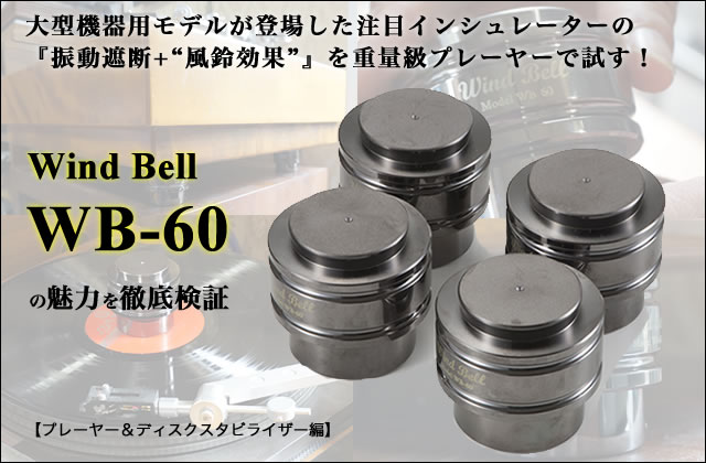 振動遮断効果に加えて“風鈴効果”でサウンドチューニングも行う特許機器のインシュレーター「Wind Bell(ウィンドベル)」に、大型機器用の新モデル「WB-60」が登場した。前回は炭山アキラ氏がスピーカーとの組み合わせで効果を試したが(関連記事)、ウィンドベルはプレーヤーなどに使っても効果を発揮するほか、アナログディスクのスタビライザー用に1個売りも用意される。そこで今回は林 正儀氏が自身の所有する重量級アナログプレーヤーを用いてWB-60の効果を検証した。