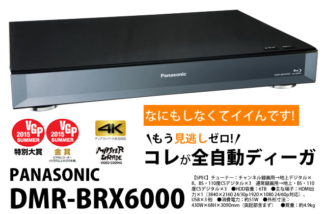 ヘビーな録画マニアをターゲットにした“全録"の思想から、初心者から上級者まで使いこなせる「全自動ディーガ」へ。BRX6000はその転換を成功させた万人にお勧めできるレコーダーだ。