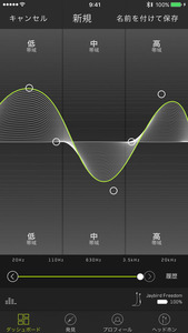 イコライザーの調整は、グラフィカルなインターフェースを見ながら音楽を聴きつつ行えるので、初心者でもその効果を確かめやすい。また、イコライザー設定はイヤホン側に記憶されるので、アプリを閉じてしまっても、設定を反映させたままで音楽を楽しめる。