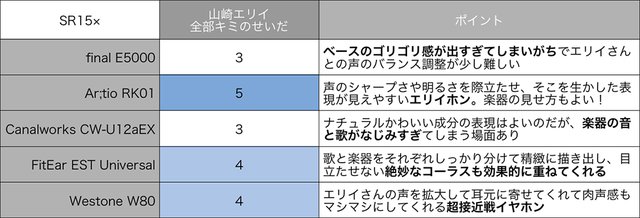 SR15とのコンビネーションで山崎エリイさん「全部キミのせいだ」の魅力を最も引き出した優勝イヤホンは……