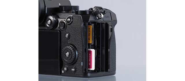 SDカードスロットは、用途に応じて「順次記録」「バックアップ記録」「振り分け記録」が可能なダブルスロットを採用。UHS-II対応スロットを1基、UHS-I対応スロットを1基備える