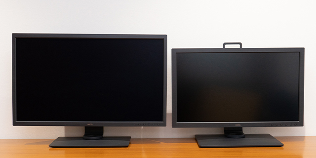 SW271C(左)とSW321C(右)の大きさの比較。いずれも表示解像度は4K UHD(3840×2160)と同等だが、SW271Cの表示が細かすぎて見辛いという印象はなかった