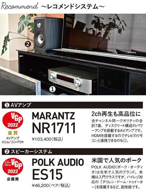 特にマランツはプロダクトデザイナーが創業したブランドで、凛とした美しい佇まいに定評があります。また、AVアンプ「NR1711」は、7.1ch仕様でドルビーアトモスにも対応するなど、スリムタイプでVGPアワードの金賞を連続受賞する本格派仕様なので、選んで間違いのないアイテム。北欧生まれの美しいスピーカーDALI「OBERON 1」を組み合わせれば、リビングの美しさはそのままに、本格的なサウンドを楽しめる充実したライフスタイルが完成します。