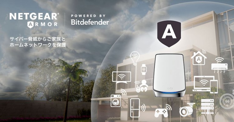 そして最後のポイントは、ネットギア製品ならではのセキュリティ機能「NETGEAR Armor」だ。この機能を使えば、スマートフォンやPCだけでなく、プリンターやIoT機器など、Wi-Fiに接続しているすべてのデバイスを外部の攻撃から守れる。電波のカバー範囲が広いと、隣の家からも繋げそうという心配も増えるが、そういった外部からのアクセスを防ぐ機能も備えているので安心してほしい。
