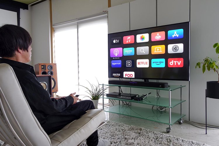 テレビコンテンツとの相性は抜群だが、音量を上げて、本気で映画を見るときはどうだろうか? ここでは映画の再生に適したムービーモードにして、Apple TV 4Kから大ヒット映画『トップガン マーヴェリック』を再生した。