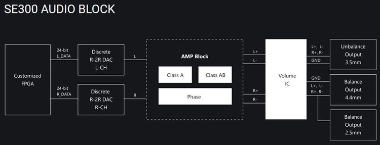 そして、2つ目のポイントは、独自FPGAを用いたOSモード/NOSモード切り替えについてである。このFPGAはR-2R方式DACの前段に配置されており、再生される音源のデジタル信号(SE300では最大PCM 384kHz/32bit、DSD 11.2MHzに対応)をR-2R方式で処理しやすいよう、24bit化する行程も担っているようだ。