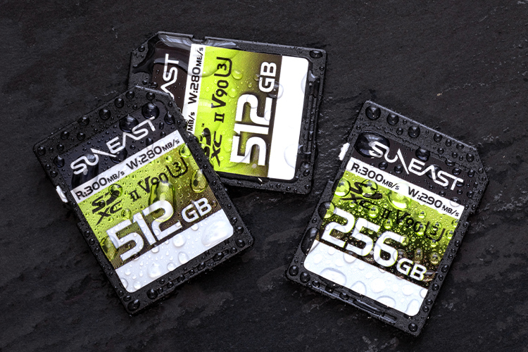記録部となるフラッシュメモリーには信頼性や耐久性に優れているpSLCタイプを採用。しかもロックスイッチ付きながら、完全モールド加工により防水性能も高く、動作保証温度もマイナス25度から85度と、プロのハードなワークフローにも応えてくれる頼もしい仕様だ。容量は、512GB、256GB、128GB、64GBの4モデルが用意されている。