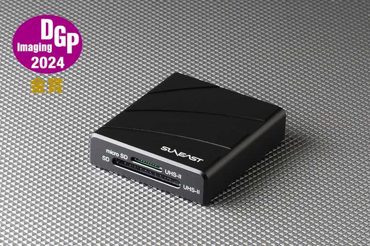 「ULTIMATE PRO SD & microSD UHS-II デュアルスロットカードリーダー」は、アクションカメラや小型ドローンなどを中心に普及著しいマイクロSDメモリーカードと、記録メディアのメインストリームと言えるSDメモリーカードの両方に1台で対応できるカードリーダー/ライター。いずれのスロットもUHS-II規格に対応し、最大312MB/秒の高速転送を実現している。