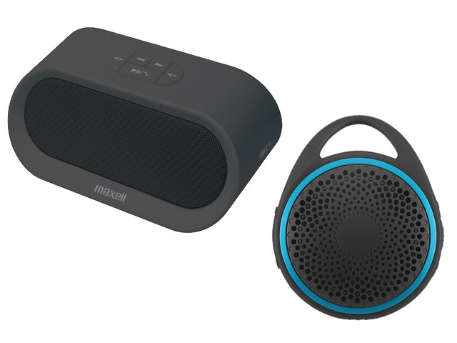 同社ではバッテリー内蔵で様々なユースケースへの対応力を高めた「MXSP-BT04」(左)や「MXSP-BTW100」(右)などのBluetoothスピーカーもラインナップ。用途によって使い分けられる