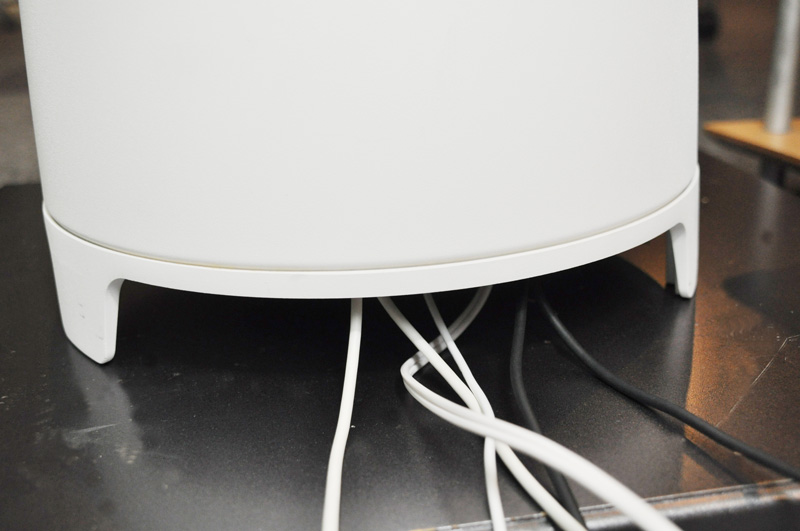 サブウーファー「5040A」の足下にケーブルを隠して収納できる