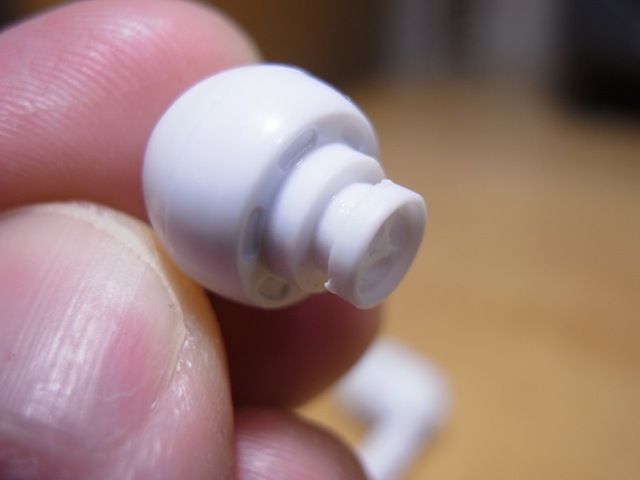 イヤーピースを外したところ。はめ込み部分にしっかりとした段差があり固定は確実。それでいて付け外しもしやすい