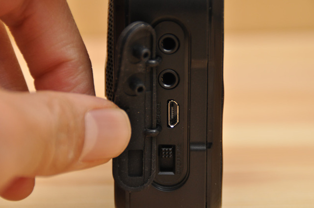 側面に外部入出力や、電源、TWS機能の切り替えスイッチを設けた