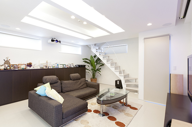 【東京・向井邸】計算しつくされた流麗な空間!17畳の美しいリビングシアター