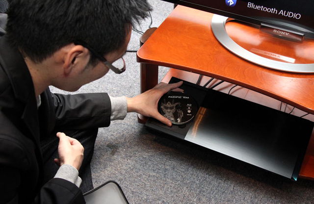 カバーが横にスライドし、ディスクトレイが現れる仕様に「かっこいいなあ」と感心しきりの折原氏