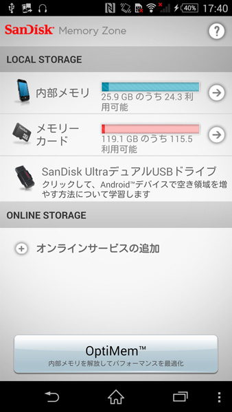 オリジナルアプリ「SanDisk Memory Zone」では、スマホ本体とmicroSDカード内でのデータの割り振りが手軽に調整できる